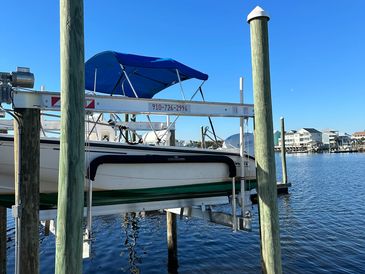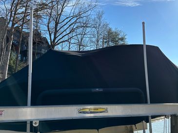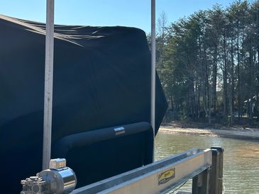 Our side bunks are designed for every cable lift on the market. Complete bolt on kits, very easy to assemble. 4 inches of foam sleeved in “Top Gun” marine canvas. This kit is made out of aluminum. We offer all different sizes from swinger PWC lifts to 30,000 lb lifts. We can offer them fully sleeved and custom heights.